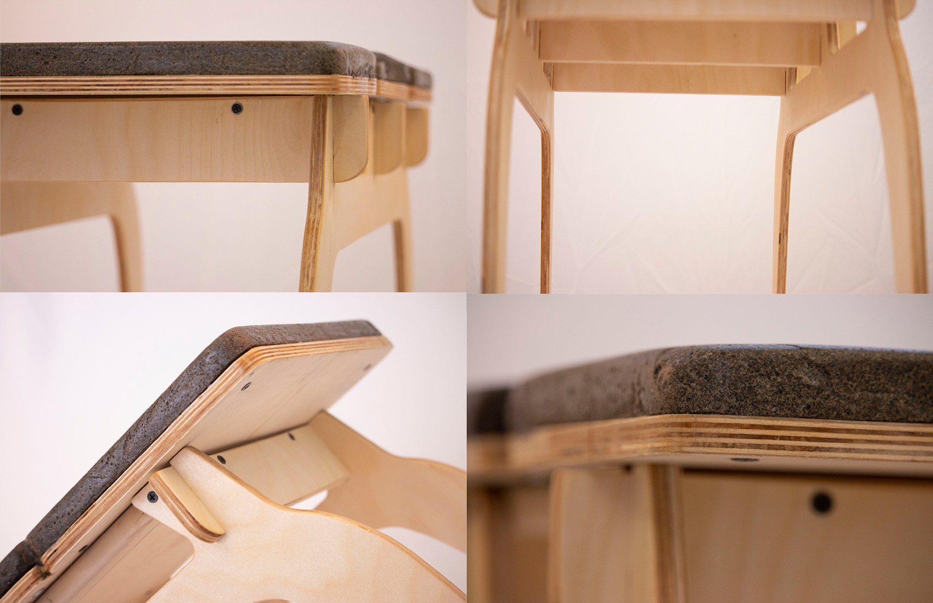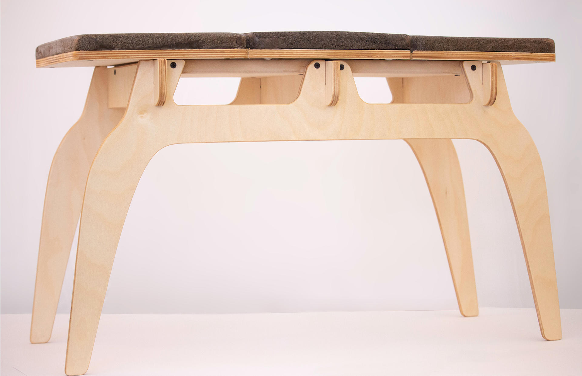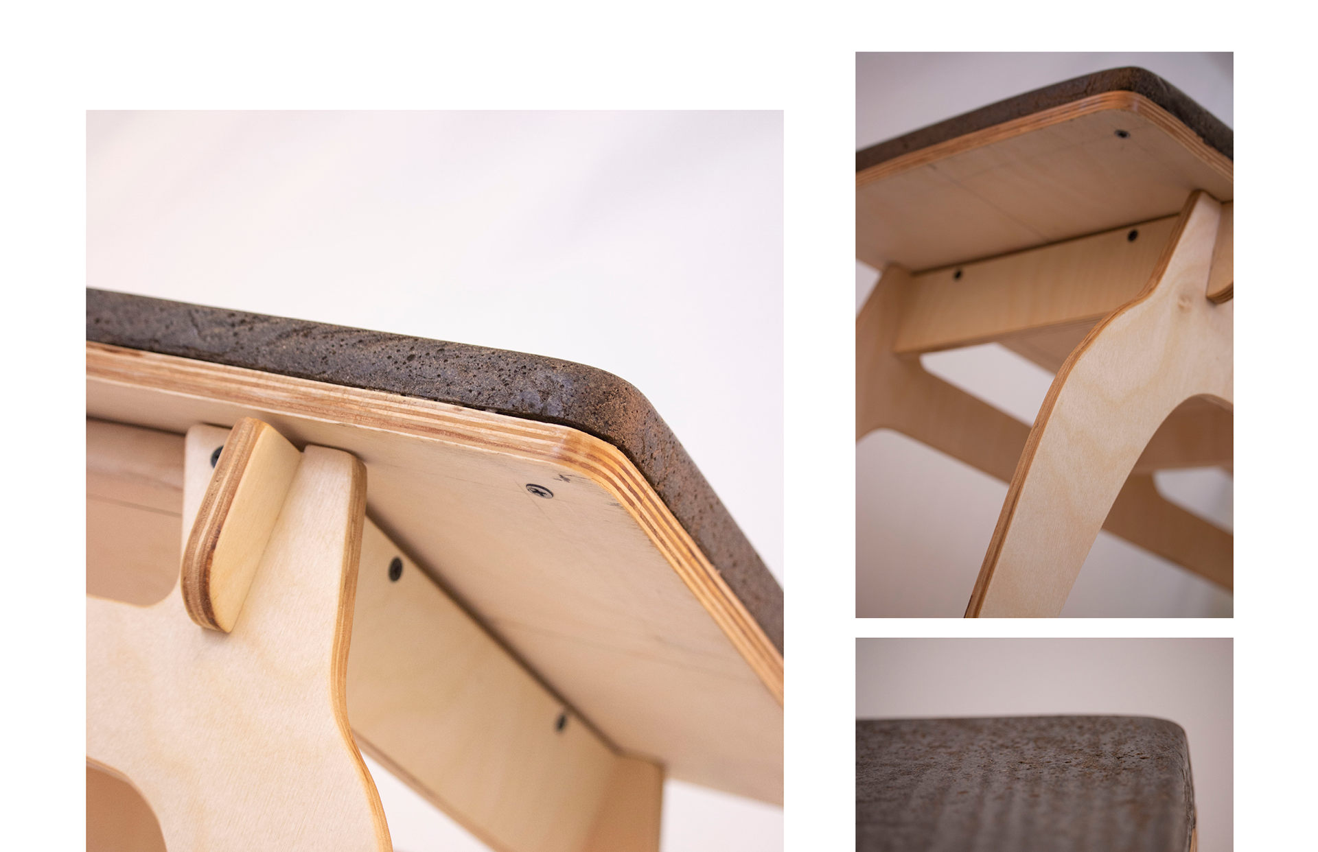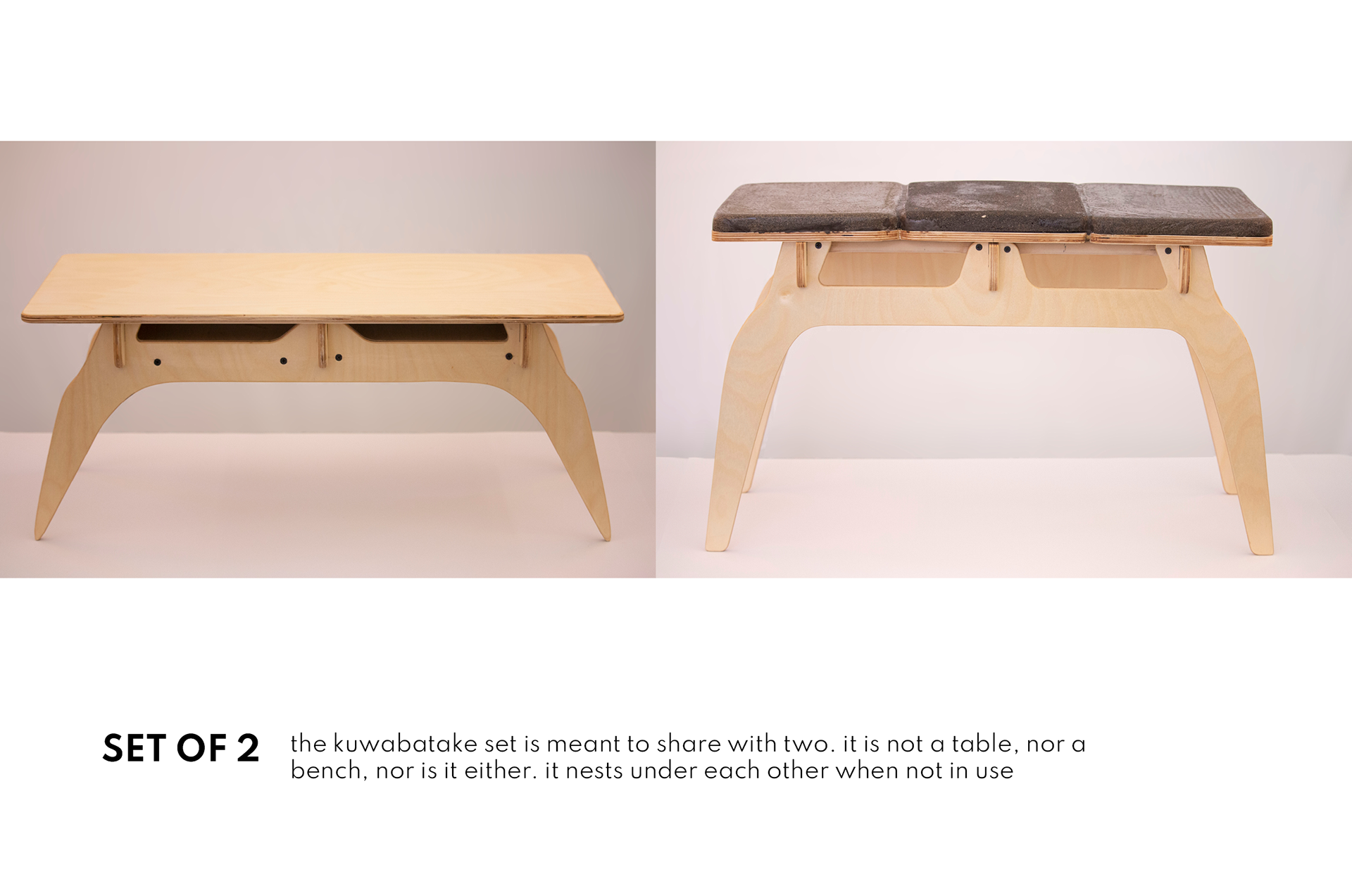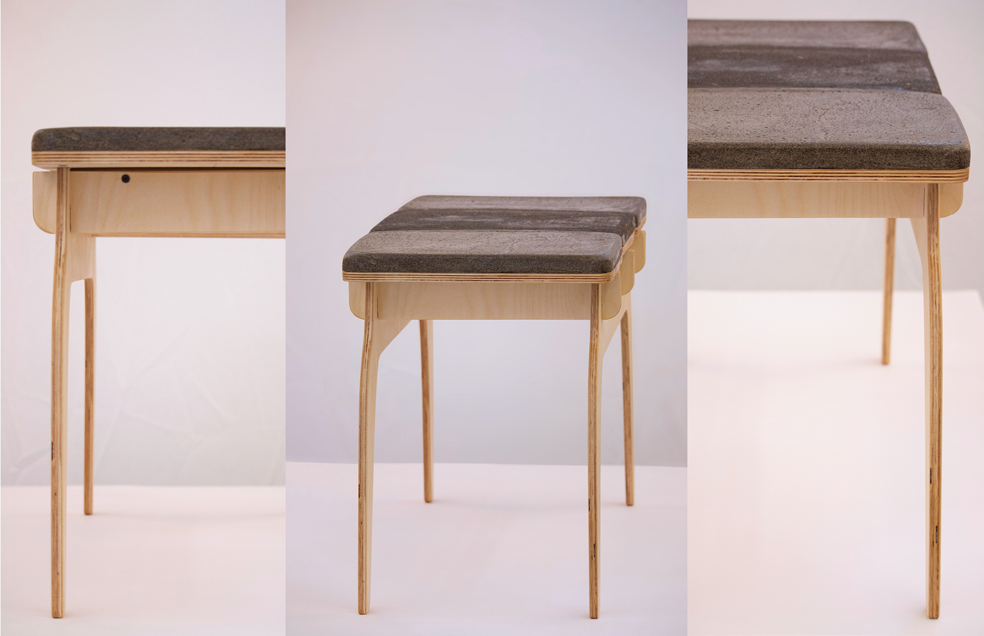 Two low, clean-lined forms that work as benches or tables. Made from sustainable wood and a corn-based concrete mix, they’re simple, sturdy, and adaptable to any space